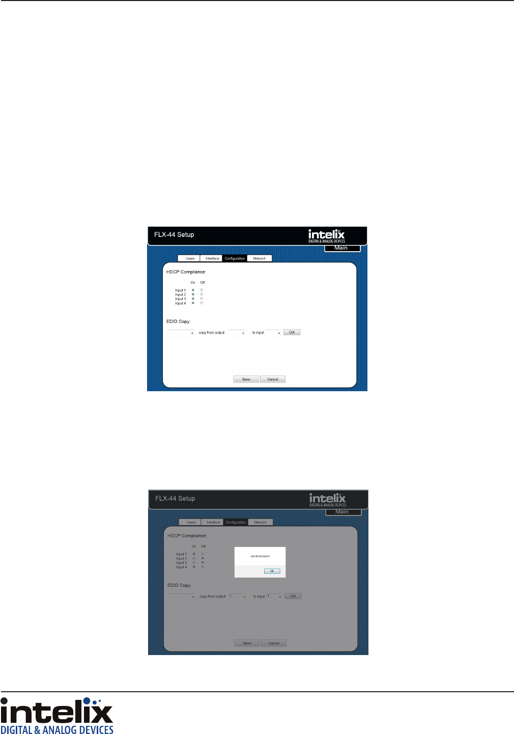 will be presented with an EDID copy success window aer the changes are successfully applied to the matrix.